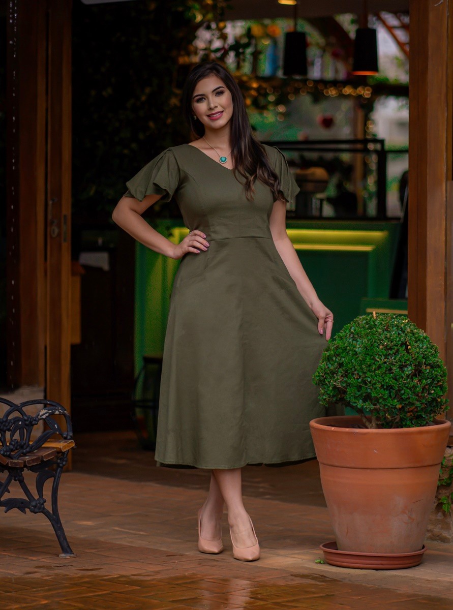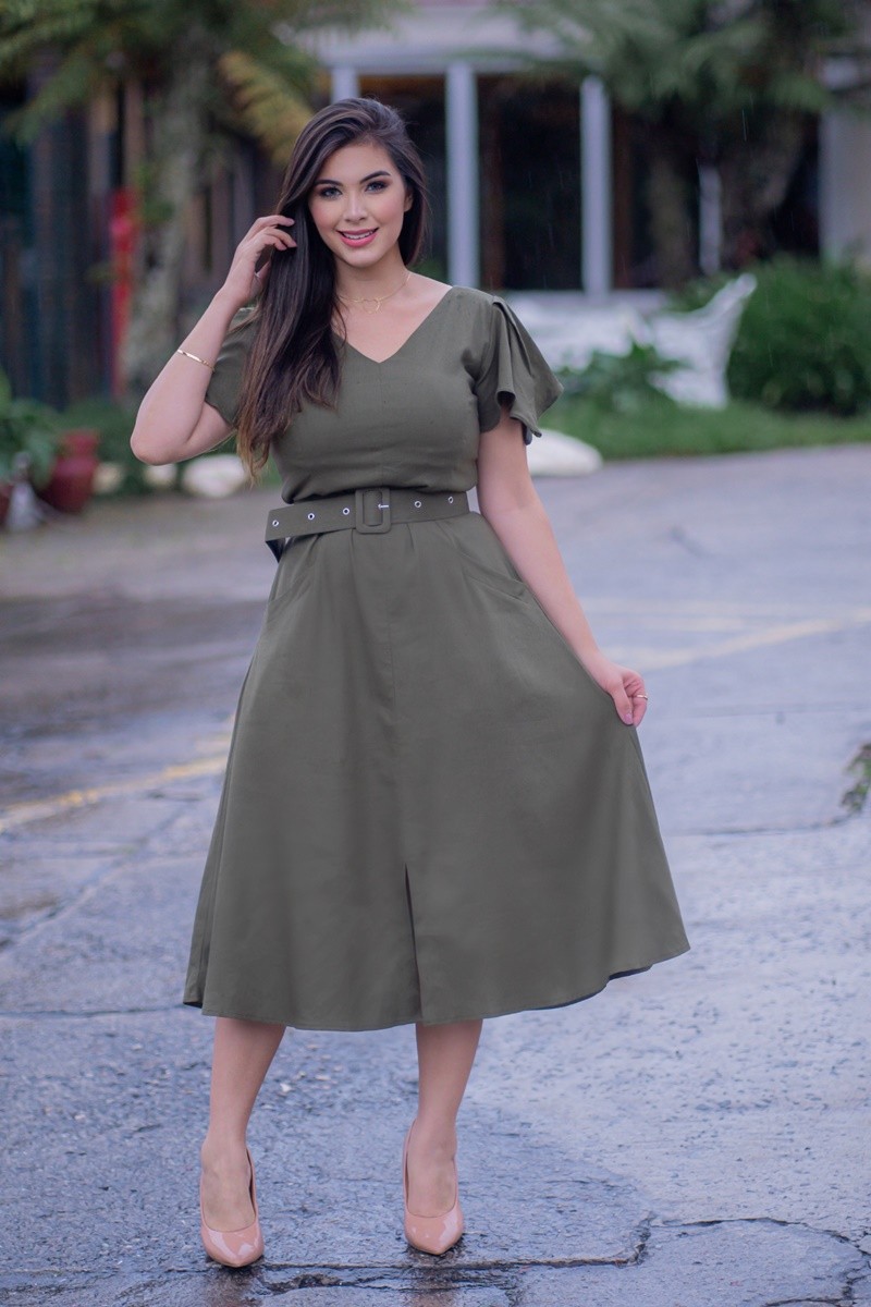 Vestido midi, confeccionado no tecido linho com elastano, trazendo conforto ao vestir.